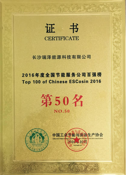近日,由國家工業和信息化部節能與綜合利用司指導,中國工業節能與清潔生產協會主辦的“2016年度全國節能服務公司百強榜”評選活動結果揭曉,長沙瑞澤能源科技有限公司再次入選。